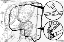 將前齒輪室蓋安裝在導(dǎo)向銷(xiāo)上。