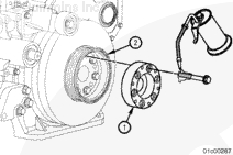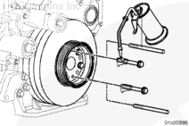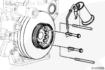 按圖示在齒輪室蓋上安裝一個(gè)千分表,測(cè)量減振器的偏心度(不圓度)。