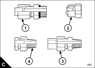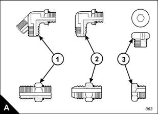 Examples of relevant fittings are shown (A): ‘O’ ring face s eal (A), 7 degree flare (A2) and plug with a
