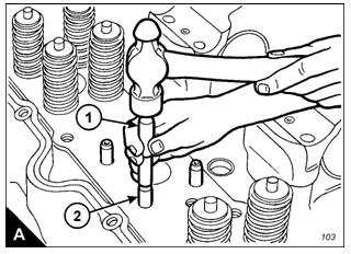 Use the special tool (A), GE5004, and a hammer to drive the valve guide (A2) from the cylinder head.