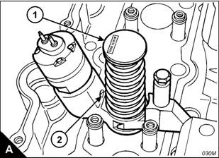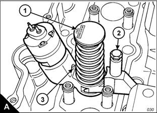 Caution: If more than one injector unit is to be removed, make a note of the trim code (A), a four-digit number