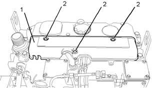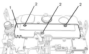 3.安裝罩(1)的調整螺釘(2)。將調整螺釘(2)擰緊至扭矩為9N·m(7lbft)。