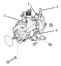 注:必須擰緊螺釘(5),以防噴油泵的軸發(fā)生轉(zhuǎn)動。從發(fā)動機上卸下噴油泵后不能使噴油泵的軸轉(zhuǎn)動。