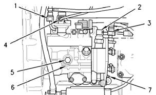 3.斷開燃油回油管(1)。從噴油泵上卸下管組件(4)。