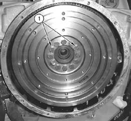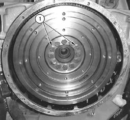 注:飛輪(3)很重。使用適當?shù)牡跹b設備,支撐住飛輪,直至安裝好調整螺釘(1)。