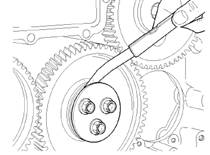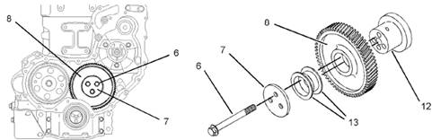 注:組裝惰齒輪和輪轂的組件(9)時,確保惰齒輪(8)上的標(biāo)記(19)朝向發(fā)動機前端。