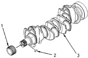 注:曲軸齒輪(1)可能在曲軸(3)上與其滑動(dòng)配合。如果將曲軸(3)安裝在發(fā)動(dòng)機(jī)內(nèi),先使用一個(gè)合適的工具,以確保曲軸齒輪(1)不是滑動(dòng)配合,然后再從發(fā)動(dòng)機(jī)上拆除曲軸。
