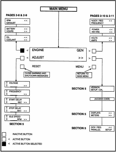 康明斯柴油發(fā)電機(jī)組PCC3100發(fā)電機(jī)組主功能(MAINMENU)