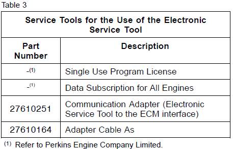 表3列出了所需的Perkins1204e-e44tta和1206e-e66ta柴油發(fā)動機(jī)服務(wù)工具使用電子服務(wù)工具。