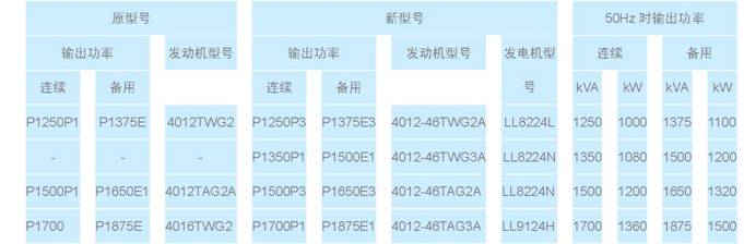 威爾信 1250kVA~1875kVA發(fā)電機組(原來由 Perkins4012和 4016系列發(fā)動機驅動)有重大設計改變,產(chǎn)品類型增多,性能進一步改善。具體變更見下表: |