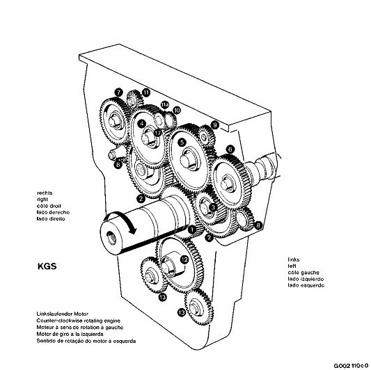 10、調(diào)速器驅(qū)動齒輪           11、增壓空氣冷卻水泵驅(qū)動齒輪