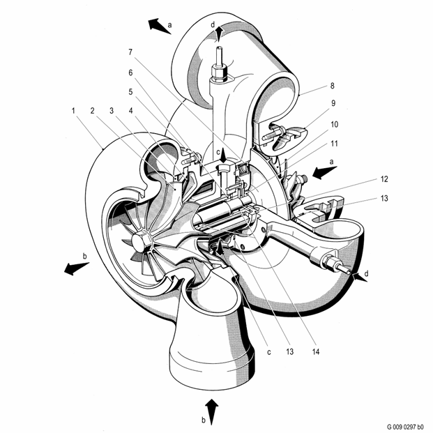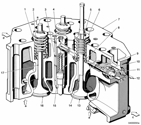 a、冷卻水入口  b、燃料入口  c、空氣入口  d、排氣