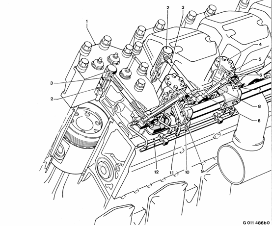 描述:分體式缸頭被螺栓緊固在曲軸箱上,曲軸箱與缸頭間由銅墊片進行密封, 油路和冷卻水路又由橡膠密封圈進行密封,缸頭上表面由缸蓋進行密封,每個缸頭上有兩個進氣閥和兩個排氣閥分布在噴油器的周圍,進氣閥和排氣閥安裝在下彈簧座上,噴油器安裝在氣閥中間的孔內(nèi),與缸頭油道間用密封環(huán)進行密封。每個缸頭都有一個減壓閥,每一側(cè)活塞組布置一個啟動空氣分配器。