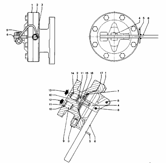 1、閥蓋    2、彈簧    3、閥瓣    4、O形圈    5、防火絲網(wǎng)    6、孔門端蓋