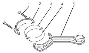 2將上軸瓦(4)安裝到連桿(5)上。確保上軸瓦的定位凸舌正確座入連桿的槽中。