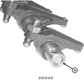 1. 在端塞(A) 的外緣涂 LOCTITE 277 高強(qiáng)度螺紋緊固劑,并裝入搖臂軸兩端固定。