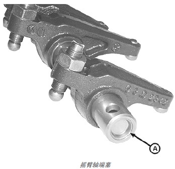 注意: 為便于組裝,拆卸搖臂軸時(shí)應(yīng)標(biāo)記部件的位置。只有清潔搖臂軸時(shí),才有必要拆卸端塞(A)。