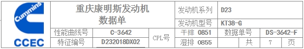 康明斯發(fā)動機(jī)排放數(shù)據(jù)單 | |