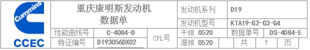 康明斯發(fā)動機KTA19-G2-G3-G4技術規(guī)格數(shù)據(jù)單