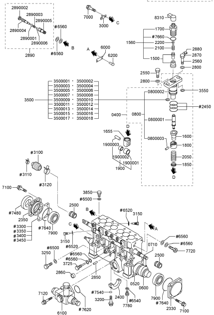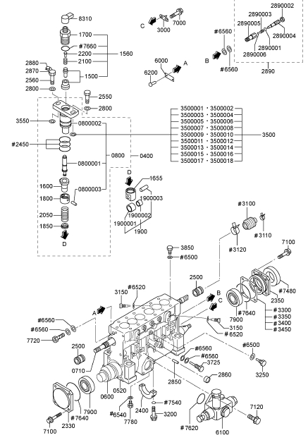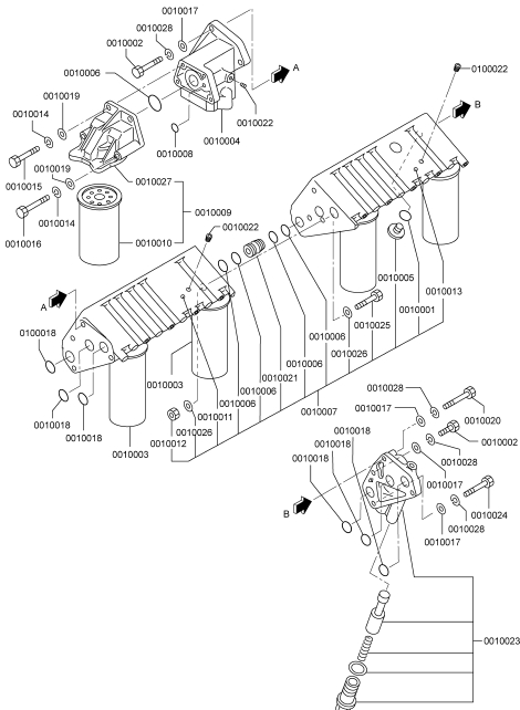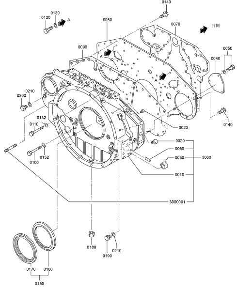 此目錄里使用的用于安裝的螺栓中,帶墊圈螺栓在記事欄里表示為"B/W"。(零部件名稱:BOLT、