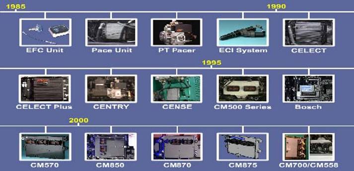 由于電控柴油機(jī)燃油系統(tǒng)的多樣性,康明斯有多種不同型號(hào)的 ECM用在不同型號(hào)的發(fā)動(dòng)機(jī)上。下圖列出了不同年代在康明斯發(fā)動(dòng)機(jī)上使用的 ECM。這些 ECM具有不同的零件號(hào),在定購(gòu)時(shí)請(qǐng)注意。