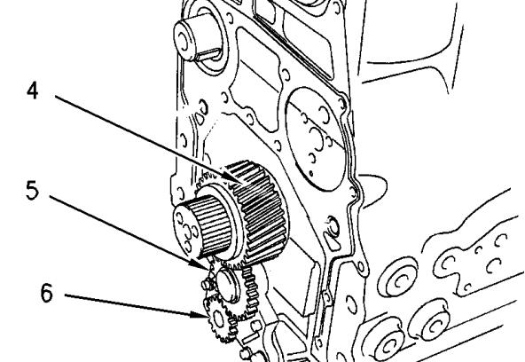 惰輪 (3) 與曲軸齒輪 (4) 之間的齒隙 ......... 0.05 至 0.15 mm (0.0020 至 0.0059 in)