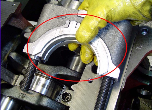 主軸承蓋裝反時(shí),A處與B處干涉,無法裝配,安裝主軸承蓋要注意編號(hào)。