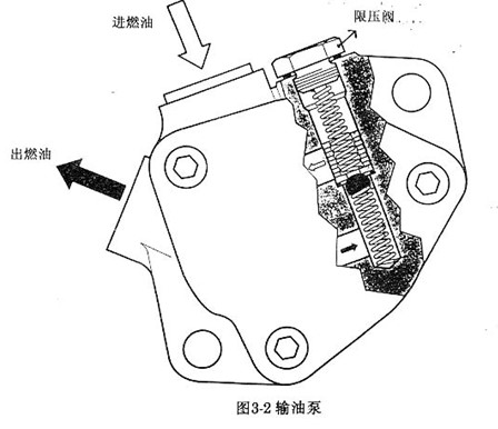 輸油泵由一對內(nèi)嚙合的齒輪構(gòu)成,泵內(nèi)部裝有限壓閥。低壓油路中的壓力穩(wěn)定對柴油機(jī)的功率輸出是至關(guān)重要的。發(fā)動(dòng)機(jī)的功率不足時(shí)首先就應(yīng)檢查低壓油路的壓力。另外回油閥閥芯銹蝕或彈簧失效是造成柴油機(jī)不能啟動(dòng)的重要原因之一。