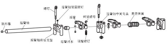 大宇發(fā)動(dòng)機(jī)搖臂組由搖臂、搖臂軸、搖臂軸支座及定位彈簧等組成各自的功能是什么
