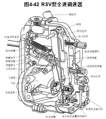 圖4 - 42所示為國(guó)產(chǎn)A型噴油泵上采用的RSV型全速調(diào)速器,與RAD型兩速調(diào)速器基本相同,但為了實(shí)現(xiàn)柴油機(jī)工作轉(zhuǎn)速范圍內(nèi)的全速調(diào)節(jié)控制,因而增設(shè)了以下結(jié)構(gòu):