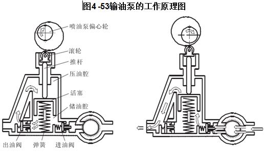 沃爾沃柴油機(jī)輸油泵的工作原理如圖4-53所示。