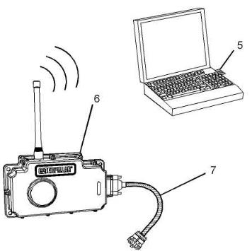 (1)個人電腦(PC)(5) 261 -4867卡 (6) 239-9955 無線通訊設備 (7) 259-3183 數據鏈接線 注意:第(5), (6), 和(7)項是261 –3363 無線通訊適配器組的部件。 執(zhí)行以下程序,連接無線通訊適配器以使用ET。1. 去除ECM的電源2. 確認計算機已正確設置了261 –4867卡(PCMCIA)。 檢驗PC卡安裝在計算機PCI擴展槽。3. 在通訊設備(6)和服務工具接頭之間連接線纜(7)。4. 接上ECM的電源。如果ET和適配器不能與電子控制模塊(ECM)通訊,參閱《故障排除》沒有診斷代碼時的故障排除“ 電子服務工具不能與ECM通訊” 。
