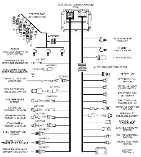 卡特彼勒C15和C18發(fā)動機傳感器位置和電氣接頭配件與控制線束顏色標(biāo)識知識
