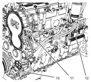 圖70g0H94i00CAT攤鋪機發(fā)動機左側(cè)視圖(范例)(10)主速度/時間感應(yīng)塞(11)次速度/時間傳感器(12)P2ECM接頭B.徹底檢查接頭(10),(11)和(12)。參考《故障排除》“電氣接頭-檢查”獲得細(xì)節(jié)。