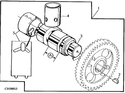 6、按約翰迪爾John Deere柴油機轉(zhuǎn)動方向轉(zhuǎn)動飛輪,直到正時銷進入正時孔為止。