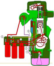 VOLVO沃爾沃柴油機(jī)的維修保養(yǎng)基本知識(shí) 安全注意事項(xiàng) VOLVO沃爾沃柴油發(fā)動(dòng)機(jī)每日檢查項(xiàng)目 養(yǎng)成在起動(dòng)發(fā)動(dòng)機(jī)之前和停機(jī)后直觀檢查發(fā)動(dòng)機(jī)的習(xí)慣。這有助于你及時(shí)發(fā)現(xiàn)燃油、潤(rùn)滑油或冷卻液的泄漏和其它一些已經(jīng)發(fā)生或?qū)⒁l(fā)生的異常情況。 VOLVO沃爾沃柴油發(fā)動(dòng)機(jī)一般的常規(guī)保養(yǎng) a) 檢查/更換空氣濾清器 發(fā)動(dòng)機(jī)停機(jī)后,空氣阻塞指示器如仍滯留紅標(biāo)時(shí),則應(yīng)更換空氣濾清器。更換后應(yīng)按壓阻塞指示器上的按鈕使其指示復(fù)位。 注意!空氣阻塞指示器未顯示紅標(biāo)時(shí),需更換空氣濾清器。被更換的空氣濾清器不能清洗和回用。 重要事項(xiàng)!連續(xù)運(yùn)行時(shí),應(yīng)該每8小時(shí)檢查一次空氣濾清器。 b) 檢查VOLVO沃爾沃柴油發(fā)動(dòng)機(jī)進(jìn)氣管路有無(wú)泄漏 檢查進(jìn)氣管路有無(wú)裂縫或其它損壞。如有必要應(yīng)予更換。檢查所有的軟管夾箍。 c) 調(diào)整VOLVO沃爾沃柴油發(fā)動(dòng)機(jī)怠速 首先檢查空氣濾清器是否堵塞。檢查當(dāng)油門機(jī)構(gòu)處于怠速位置時(shí),噴油泵上的油門拉桿(1)是否靠在怠速限位螺釘(2)上。還要檢查當(dāng)油門控制桿在最大油量位置時(shí),油門拉桿是否壓在最大供油限位螺釘(3)上。如有必要,則進(jìn)行調(diào)整。 警告提示!靠近正在運(yùn)行的發(fā)動(dòng)機(jī)或在其上工作是有危險(xiǎn)的。要小那些正在旋轉(zhuǎn)的零部件和高溫表面。 d) VOLVO沃爾沃柴油發(fā)動(dòng)機(jī)RSV調(diào)速器 1) 讓發(fā)動(dòng)機(jī)在怠速下運(yùn)行。 2) 如有必要,卸下園項(xiàng)螺帽(1),擰松鎖緊螺母(2),用螺釘(3)調(diào)整發(fā)動(dòng)機(jī)怠速。 如果發(fā)動(dòng)機(jī)空轉(zhuǎn)轉(zhuǎn)速不穩(wěn),應(yīng)該按下述方法調(diào)整其穩(wěn)定性。 1) 拆下園頂螺帽(4)并擰松鎖緊螺母(5)。小心地按順時(shí)針方向擰動(dòng)怠速穩(wěn)定螺(6),直到發(fā)動(dòng)機(jī)轉(zhuǎn)速穩(wěn)定為止。 2) 檢查最高空轉(zhuǎn)轉(zhuǎn)速有否改變,如有改變,則說(shuō)明怠速穩(wěn)定螺釘(6)調(diào)整過(guò)大。 3) 完成調(diào)整后,鎖緊怠速穩(wěn)定螺釘(6),擰上園頂螺帽(4) e) VOLVO沃爾沃柴油發(fā)動(dòng)機(jī)RQV,RQ調(diào)速器 1) 讓發(fā)動(dòng)機(jī)在怠速下運(yùn)行。 2) 如有必要,用怠速螺釘(1)調(diào)整發(fā)動(dòng)機(jī)的轉(zhuǎn)速。 f) 檢查和調(diào)整VOLVO沃爾沃柴油發(fā)動(dòng)機(jī)傳動(dòng)皮帶 傳動(dòng)皮帶的檢查和調(diào)整應(yīng)該在發(fā)動(dòng)機(jī)運(yùn)行后皮帶熱態(tài)時(shí)進(jìn)行。 在張緊充電發(fā)電機(jī)皮帶之前,應(yīng)先擰松螺栓(A),使皮帶在兩皮帶輪的中點(diǎn)處可被壓下10mm,然后再擰緊螺栓(A)。成對(duì)工作的皮帶磨損后應(yīng)同時(shí)更換。 風(fēng)扇皮帶有自動(dòng)張緊器,不需要調(diào)整。但是必須檢查皮帶的狀況。如有必要,予以更換。 VOLVO沃爾沃柴油發(fā)動(dòng)機(jī)潤(rùn)滑系統(tǒng) 潤(rùn)滑油的更換周期取決于潤(rùn)滑油的品質(zhì)和燃油的硫含量,在40到500小時(shí)之間不等。要注意潤(rùn)滑油的更換周期決不可超過(guò)12個(gè)月。 如果要求潤(rùn)滑油的更換周期比下表所列時(shí)間更長(zhǎng),則潤(rùn)滑油的性狀必須由潤(rùn)滑油制造廠商作定期檢測(cè)。 VOLVO沃爾沃柴油發(fā)動(dòng)機(jī)潤(rùn)滑油 注意!只要能滿足上述要求,礦基的、半合成和全合成潤(rùn)滑油都可以使用。 1)必須使用TBN14-20潤(rùn)滑油 VDS=Volvo發(fā)動(dòng)機(jī)潤(rùn)滑油規(guī)格 ACEA=歐洲汽車制造商協(xié)會(huì) API=美國(guó)石油學(xué)會(huì) VOLVO沃爾沃柴油發(fā)動(dòng)機(jī)機(jī)油粘度 應(yīng)根據(jù)穩(wěn)定的外界溫度,按此圖表選擇粘度合適的潤(rùn)滑油。*指合成或半合成潤(rùn)滑油。 檢查潤(rùn)滑油油位 確保油位在MIN(最低)和MAX(最高)標(biāo)記之間。 重要事項(xiàng)!連續(xù)運(yùn)行時(shí)應(yīng)每隔8小時(shí)檢查一次油位。 檢查靜態(tài)未運(yùn)轉(zhuǎn)發(fā)動(dòng)機(jī)的油位時(shí),應(yīng)查看油標(biāo)尺上標(biāo)有“STOP”(停機(jī))的那一面(至少等發(fā)動(dòng)機(jī)停止運(yùn)行3分鐘后)。 警告提示!靠近運(yùn)行中的發(fā)動(dòng)機(jī)或在其上工作是有危險(xiǎn)的。要小心那些旋轉(zhuǎn)著的零部件和灼熱表面。 更換VOLVO沃爾沃柴油發(fā)動(dòng)機(jī)潤(rùn)滑油和潤(rùn)滑油濾清器 必須遵守推薦的潤(rùn)滑油更換周期,并必須同時(shí)更換潤(rùn)滑油濾清器。 a) 徹底清潔濾清器安裝座,以免更換濾清器時(shí)污物進(jìn)入發(fā)動(dòng)機(jī)。 b) 使發(fā)動(dòng)機(jī)運(yùn)行至正常的工作溫度。 警告提示!高溫潤(rùn)滑油和灼熱表面會(huì)造成燙傷。 c) 拆下底部螺塞,放盡潤(rùn)滑油。 d) 換用新墊片后裝上底部螺塞。 e) 拆下濾情器 (1)和旁通濾情器(2)。檢查并確保發(fā)動(dòng)機(jī)的接合面上無(wú)殘留墊片。給新的濾清器加注潤(rùn)滑油,并在新墊片上薄施一層潤(rùn)滑油。用手?jǐn)Q緊濾清器直到壓住墊片,然后再擰緊半圈(不要擰得過(guò)緊?。?/P>
