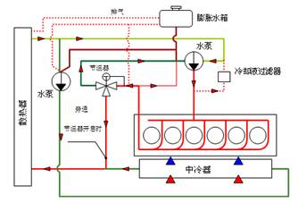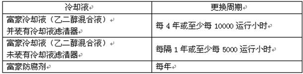 f) 加注潤(rùn)滑油至正確油位。不得超過(guò)MAX(最高)油位。 g) 起動(dòng)發(fā)動(dòng)機(jī),使其怠速運(yùn)行。檢查潤(rùn)滑油油壓是否正常。 h) 關(guān)停發(fā)動(dòng)機(jī)。檢查濾清器周圍有無(wú)潤(rùn)滑油泄漏。如有必要,添加潤(rùn)滑油。 將用過(guò)的潤(rùn)滑油及其濾清器按照環(huán)保要求處理。 VOLVO沃爾沃柴油發(fā)動(dòng)機(jī)冷卻系統(tǒng) 冷卻系統(tǒng)應(yīng)該使用能夠保護(hù)發(fā)動(dòng)機(jī)內(nèi)部免受腐蝕和凍結(jié)(如果氣候條件有此要求)的冷卻液。切勿只用普通水作冷卻液。 防腐添加劑的效能會(huì)隨時(shí)間而下降,因此必須定期更換冷卻液。若能遵循富豪遍達(dá)有關(guān)冷卻液的各項(xiàng)建議,則可以采用下列更換周期。 重要事項(xiàng)!更換冷卻液時(shí),必須先徹底沖洗冷卻系統(tǒng),見“沖洗冷卻系統(tǒng)”。更換冷卻液時(shí),毋須同時(shí)更換冷卻液濾清器(附件)。但在首次更換冷卻液的6個(gè)月后必須更換冷卻液濾清器,此后可每6個(gè)月更換一次,見“更換冷卻液濾清器”。 VOLVO沃爾沃柴油發(fā)動(dòng)機(jī)冷卻液 重要事項(xiàng)!為了避免發(fā)動(dòng)機(jī)和冷卻系統(tǒng)因凍結(jié)或腐蝕而造成阻塞或損壞,必須遵守下列建議: 水質(zhì) 切記必須使用符合ASTMD4985要求的凈水。如果不符合其要求,冷卻系統(tǒng)就有可能阻塞,從而降低冷卻效率。如果水的凈度不符合要求,則必須使用蒸餾水或已配制好的冷卻液。 總顆粒物 <340 ppm 總硬度 <9.5°dH 氯化物 <40 ppm 硫酸鹽 <100 ppm PH值 5.5-9 硅 < 20mg SiO2 perI 鐵 <0.10 ppm 錳 <0.05 ppm 導(dǎo)電率 < 500 uS per cm 有機(jī)物含量,CODMn <15 mg kMnO4 perI 檢查并添加冷卻液 警告提示!除遇緊急情況外,當(dāng)發(fā)動(dòng)機(jī)還在高溫時(shí),不要打開冷卻液加液口蓋。蒸汽或高溫冷卻液會(huì)噴射出來(lái)。 每天起動(dòng)前應(yīng)檢查冷卻液液位。必要時(shí)添加。冷卻液液面應(yīng)低于加液口密封面5 cm。裝有單獨(dú)的膨脹水箱時(shí),則加注到MIN(最低)和MAX(最高)標(biāo)記之間。 重要事項(xiàng)!添加的冷卻液應(yīng)和冷卻系統(tǒng)內(nèi)原有的冷卻液相同。 給已放空的冷卻系統(tǒng)灌充冷卻液 先檢查并確保所有的放水閥均已關(guān)閉。 放水閥和放氣閥的位置見下再示意圖 灌充冷卻液時(shí),必須關(guān)停發(fā)動(dòng)機(jī),然后緩慢加入,以使空氣能夠通過(guò)放氣閥和加液口排出。 如果發(fā)動(dòng)機(jī)冷卻系統(tǒng)中裝有加熱器,則必須打開加熱器的控制閥,以使加熱器在灌充時(shí)排氣。 灌充冷卻液應(yīng)達(dá)到規(guī)定的液位。在排盡冷卻系統(tǒng)內(nèi)的空氣和完全加滿冷卻液之前,切勿起動(dòng)發(fā)動(dòng)機(jī)。 起動(dòng)發(fā)動(dòng)機(jī)并運(yùn)行至節(jié)溫器開啟(這大約需要20分鐘)。發(fā)動(dòng)機(jī)起動(dòng)后,短暫地打開所有放氣閥,排出滯留的空氣。檢查冷卻液液位,如有必要,則添加。 放空VOLVO沃爾沃柴油發(fā)動(dòng)機(jī)的冷卻液 在放出冷卻液之前,必須關(guān)停發(fā)動(dòng)機(jī)并打開加液口蓋。 沖洗VOLVO沃爾沃柴油發(fā)動(dòng)機(jī)冷卻系統(tǒng) 散熱器和冷卻液通道內(nèi)的沉積物會(huì)降低發(fā)動(dòng)機(jī)的冷卻效能。因此,更換冷卻液時(shí)必須沖洗冷卻系統(tǒng)。 a) 按前述放盡冷卻液。 b) 在開啟的加液口中插入一根軟管,用清水沖洗,直到流出的水完全潔凈時(shí)為止。 c) 關(guān)閉放水閥和放水塔塞。按照“檢查和添加冷卻液”一節(jié)中的說(shuō)明加入新的冷卻液。 清洗空冷式中冷器外部(TAD增壓空氣冷卻器) 拆去散熱器的護(hù)罩,用清水和中性洗滌劑清洗冷卻器。可用軟毛刷刷洗,小心不要損壞散熱器片。重新裝好各零部件。 重要事項(xiàng)!不可用高壓水槍沖洗。 更換冷卻液濾清器 它具有過(guò)濾冷卻液和防腐保護(hù)作用。 重要事項(xiàng)!為防止過(guò)強(qiáng)的防腐保護(hù)而導(dǎo)致淤塞,在更換冷卻液時(shí)不應(yīng)同時(shí)更換冷卻液濾清器,而應(yīng)在首次更換冷卻液的6個(gè)月后更換,以后可每6個(gè)月更換一次濾清器。 關(guān)閉閥(1)。用合適的工具拆下濾清器。在密封墊上均勻涂沫少許潤(rùn)滑油并用手?jǐn)Q上新濾清器。當(dāng)密封墊開始被壓緊時(shí),再擰緊 1/2圈。打開閥( 1)。 VOLVO沃爾沃柴油發(fā)動(dòng)機(jī)燃油噴射系統(tǒng) 只能使用符合下列標(biāo)準(zhǔn)所推薦的品質(zhì)的燃油。加油時(shí)和對(duì)燃油噴射系統(tǒng)進(jìn)行工作時(shí),務(wù)必始終保持其高度的清潔。 所有涉及發(fā)動(dòng)機(jī)噴油泵或噴油器的工作,都必須由經(jīng)過(guò)授權(quán)的維修廠進(jìn)行。如果噴油泵上的鉛封已被打開,則所有的擔(dān)保均即無(wú)效。 警告提示!注意防火。必須要在發(fā)動(dòng)機(jī)冷卻后,才能對(duì)其燃油系統(tǒng)進(jìn)行工作。燃油濺到灼熱的表面或電路器件上可能引發(fā)火災(zāi)。存放吸有燃油的擦布要注意安全防火。 更換VOLVO沃爾沃柴油發(fā)動(dòng)機(jī)燃油濾清器 保持清潔!不得讓任何塵?;蛭畚镞M(jìn)入燃油系統(tǒng)。 警告提示!更換燃油濾清器應(yīng)在冷機(jī)狀態(tài)下進(jìn)行,以避免燃油濺到灼熱表面而引起著火。 拆下濾清器。在新的濾清器墊片上涂少