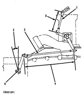 8. 將節(jié)流板和調(diào)節(jié)器軸都放到全開位置,根據(jù)拉桿間距調(diào)節(jié)中部連桿(3)到適當(dāng)距離,并安裝連桿。