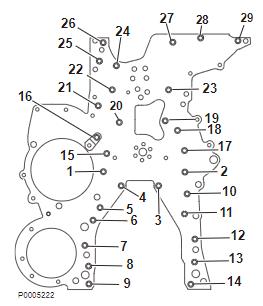 2 使正時(shí)盤(pán)與導(dǎo)向套對(duì)準(zhǔn)。安裝所有螺栓,并根據(jù)特殊緊固扭矩 8 頁(yè)按順序擰緊它們。