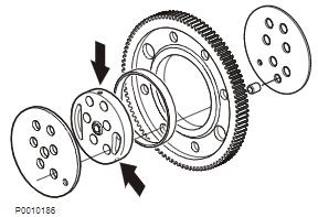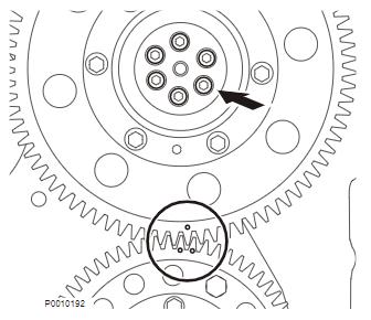 19 檢查飛輪。如有必要?jiǎng)t更換環(huán)形齒輪,參見(jiàn)齒環(huán),飛輪:更換 203 頁(yè)。