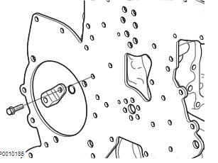 4 將新的 O 形圈安裝到曲軸上并進(jìn)行潤(rùn)滑。用相同的潤(rùn)滑劑潤(rùn)滑齒輪的外部。將沃爾沃發(fā)動(dòng)機(jī)齒輪定位銷(xiāo)安裝到曲軸孔中并確保油泵齒輪與曲軸齒輪嚙合。安裝螺栓并交替擰緊這些螺栓,從而使齒輪不歪斜。根據(jù)特殊緊固扭矩 8 頁(yè)進(jìn)行扭矩緊固。