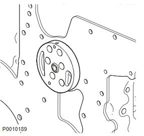 12 安裝不帶減振器的曲軸齒輪。對(duì)準(zhǔn)標(biāo)記與沃爾沃發(fā)動(dòng)機(jī)正時(shí)盤(pán)中的孔。在螺栓下面房子適當(dāng)?shù)母羝米鳒p振器替換件。
