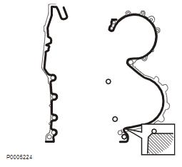 1 安裝前最多20 分鐘內(nèi),在正時(shí)盤(pán)上的槽外側(cè)涂抹一層 2 mm (0.08")厚的密封膠。