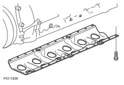 11 徹底清潔油底殼。檢查油底殼橡膠密封件是否需要更換。去掉前曲軸密封蓋上的多余密封劑。去掉正時盤和飛輪殼上的多余密封劑。在接頭處涂抹新的密封劑并在 20 分鐘內(nèi)安裝油底殼。