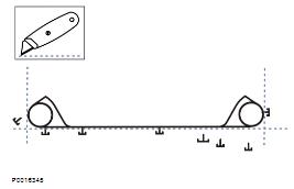 5 密封件必須使用沃爾沃遍達(dá)零件號(hào) 1161277 膠合。在兩半密封件相遇地方的上面和下面涂抹一層膠水。在圖示點(diǎn)涂抹膠水。擦去多余的膠水。安裝前等待 30 分鐘以上,以讓膠水干燥