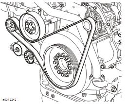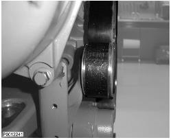 5 安裝皮帶并松開(kāi)張緊器。檢查并確認(rèn)皮帶處于惰輪皮帶輪的中心位置。