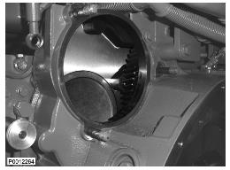 11 將泵提到合適的位置并用曲柄轉(zhuǎn)動發(fā)動機(jī)9993590 旋轉(zhuǎn)工具使正時齒輪與泵上的齒輪嚙合。緊固螺母。拆下工具并安裝保護(hù)蓋。