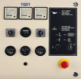 1001 control panel: (1) meter, voltmeter, ammeter, frequency/tachometer, operation schedule, cooling water thermometer, lubricating oil pressure gauge, battery voltmeter