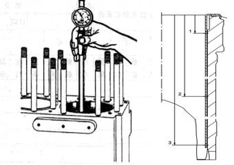 注意:結(jié)合氣閥導(dǎo)筒內(nèi)徑的測量結(jié)果,計算閥桿及導(dǎo)筒的間隙。當(dāng)間隙超過更換極限時,更換磨損嚴(yán)重的閥。