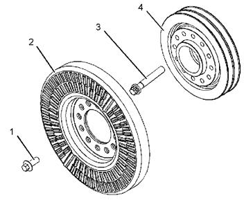 1將減振器固定螺釘擰緊至以下扭矩。 .. 115 N•m(84 lb ft) 2減振器 3將接盤固定螺釘擰緊至以下扭矩。 40 N•m